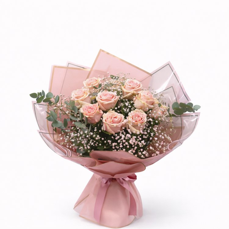 Ανθοδέσμη με 9 Ροζ Τριαντάφυλλα “Pink Love ” ποσότητα
