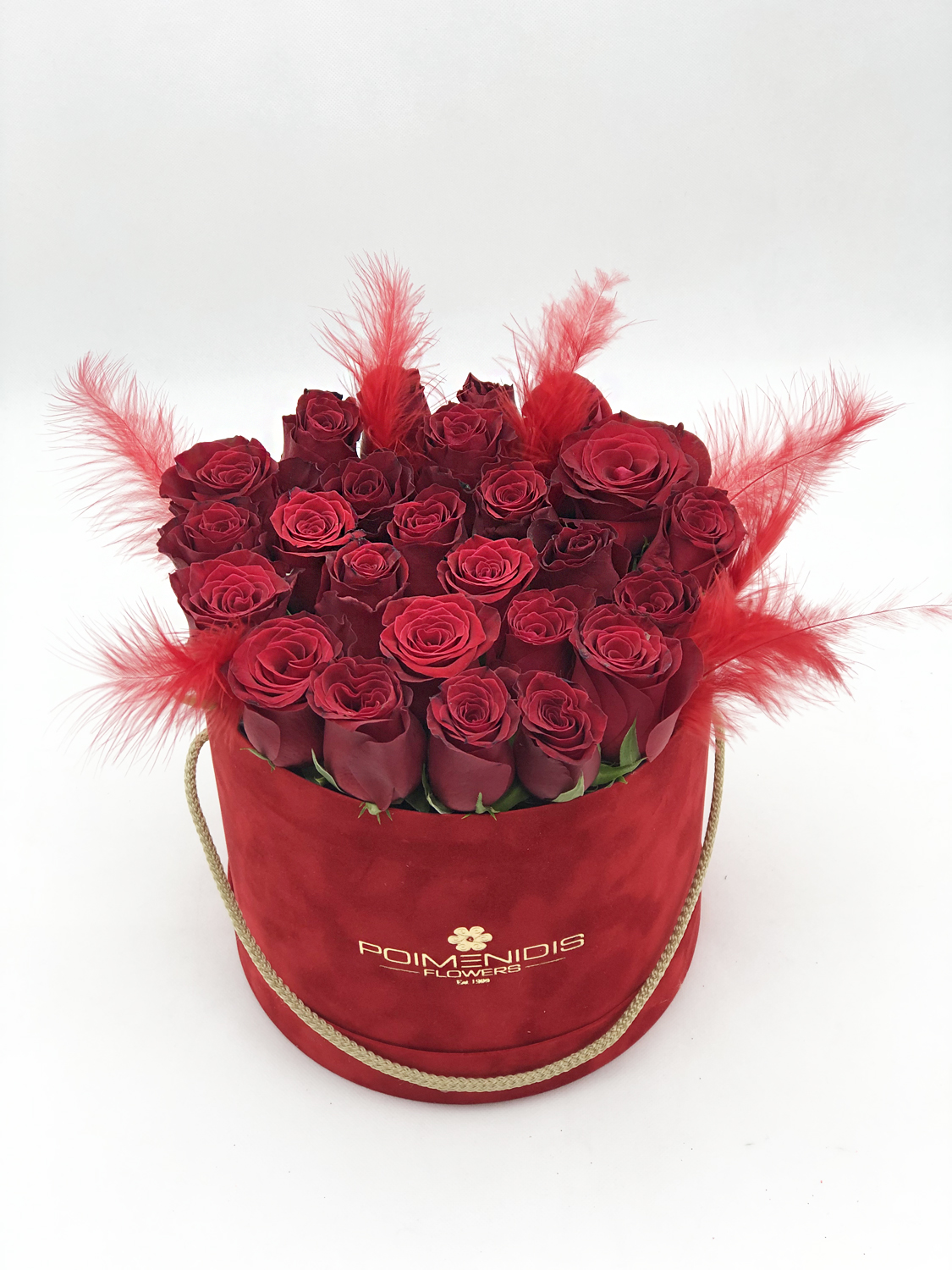 Περιλαμβάνει: 23-25 κόκκινα τριαντάφυλλα με κόκκινα πούπουλα